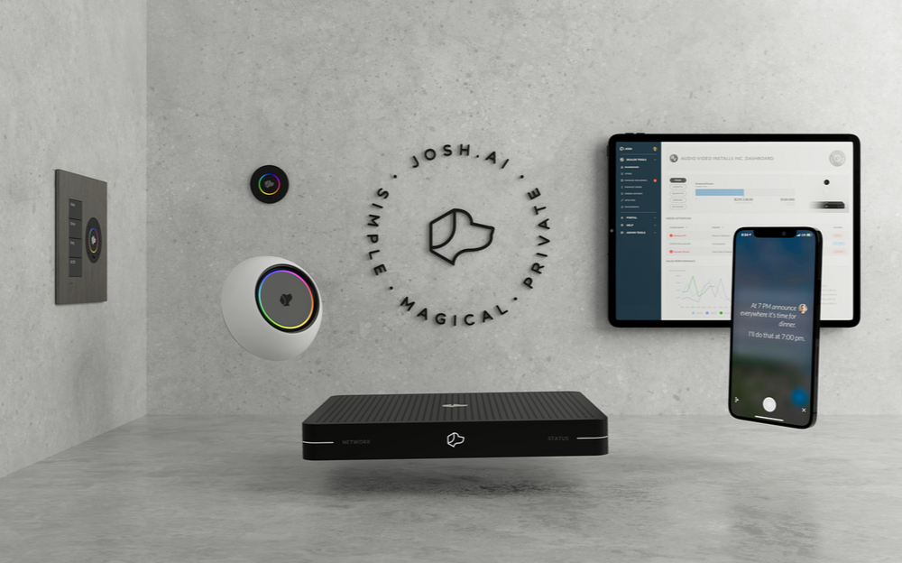Josh.ai is a privacy-first smart home voice platform designed specifically for custom homes. Unlike consumer voice assistants, Josh.ai is professionally installed, hard-wired into your home, and built to understand natural language without relying on always-on cloud recording. Voice responses play through your home’s built-in in-ceiling speakers—not a countertop device—creating a seamless, room-aware experience that feels less like a gadget and more like a truly intelligent home.