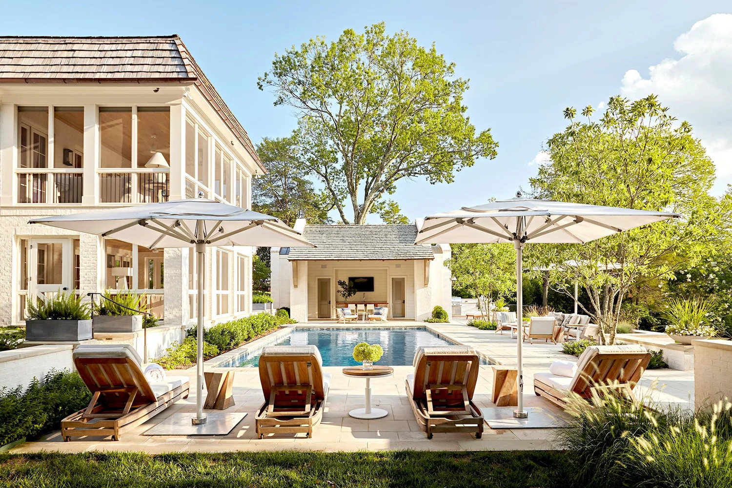 In this “Better Homes and Garden Magazine” featured project the client requested a landscape audio system that would cover the entire back yard. The speakers are hidden in the landscaping. Also installed a TV system at the pool house.