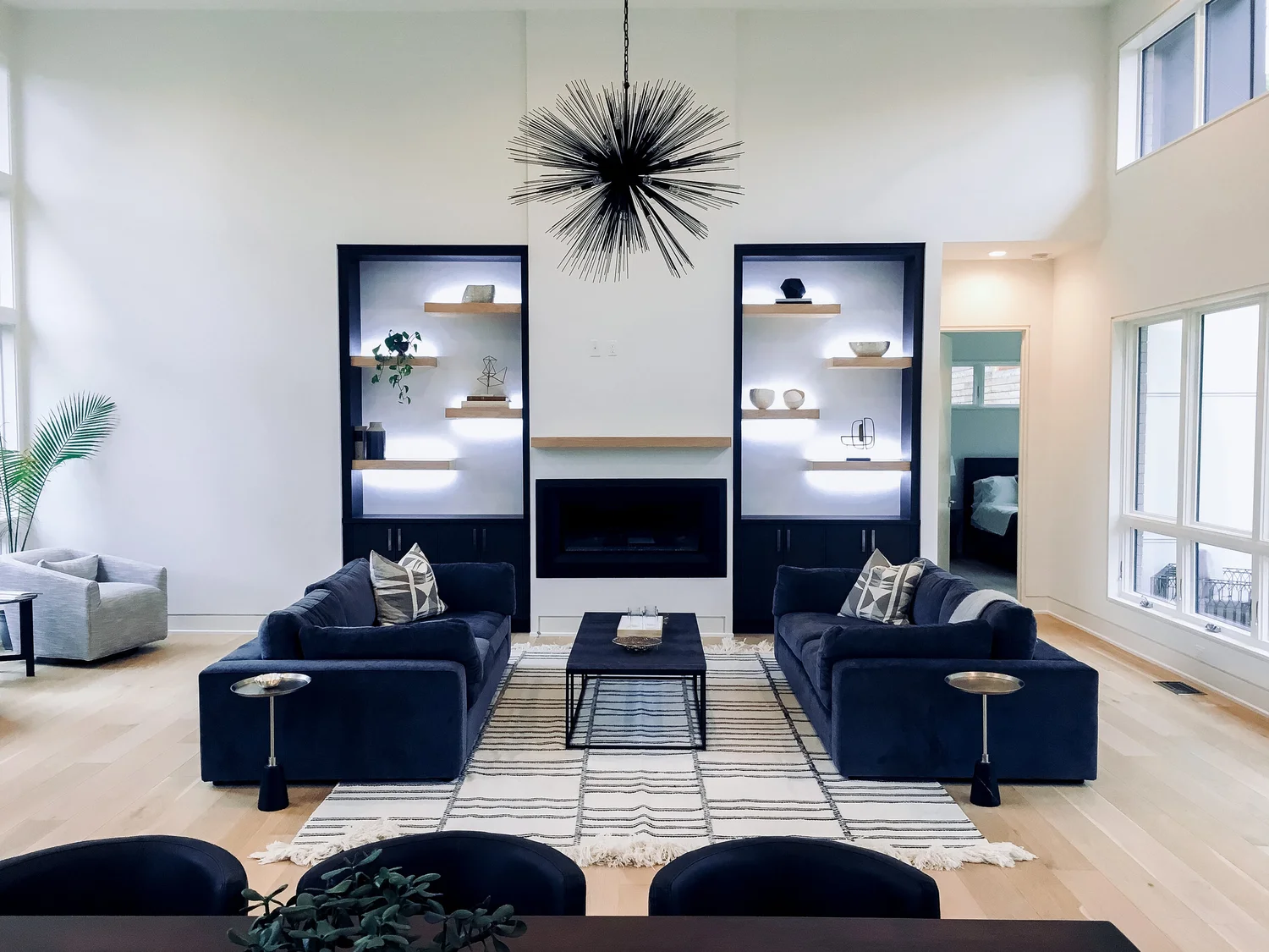 Balanced, smart-controlled lighting to complete the ambiance of this client’s modern home.